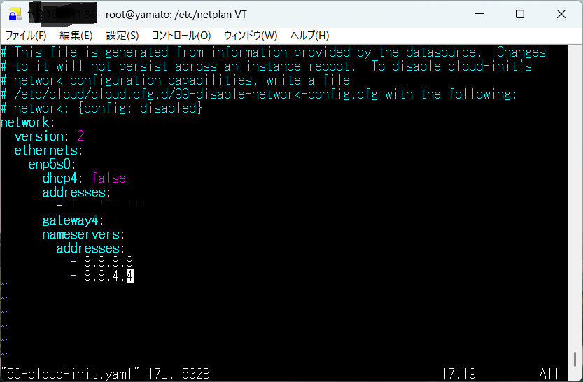🌟Ubuntu固定IP設定方法🌟 2025 4/08 エンジニア April 8, 2025November 21, 2025 目次Ubuntuサーバーのネットワーク設定確認 /etc/netplanのyamlフアイルを編集する sudo netplan apply実行 エンジニア よかったらシェアしてね! URLをコピーする URLをコピーしました! 🌿✨ 脳に任せる勉強法♪ 🌟ダイナミックDNS設定🌟 関連記事 🚚✨【超まとめ】じどらぼさんの「軽トラモバイルハウス制作 1年間の流れ」&旅農商人さんのキッチンカー制作動画 November 19, 2025 🌟 XサーバーへTera Term Menu接続するための手順書 🌟 November 14, 2025 🌸 世界一流エンジニアの思考が5行でわかる October 11, 2025 🌟ダイナミックDNS設定🌟 April 9, 2025 🌿✨ 脳に任せる勉強法♪ October 26, 2024 🌟 最強の仕事術 October 25, 2024 🌟全てのパフォーマンスを上げるには🌟 October 25, 2024